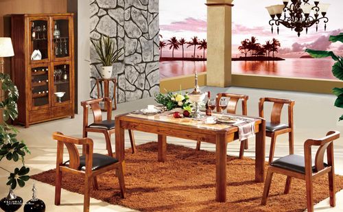 现代中式风格虎斑木全实木玉石面简约1.6米餐台