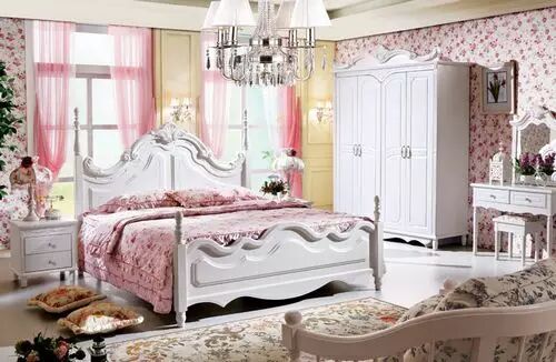 韩式浪漫田园风格象牙白卧室双人床