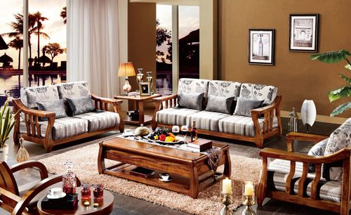 新中式虎斑实木休闲布艺舒适客厅组合沙发