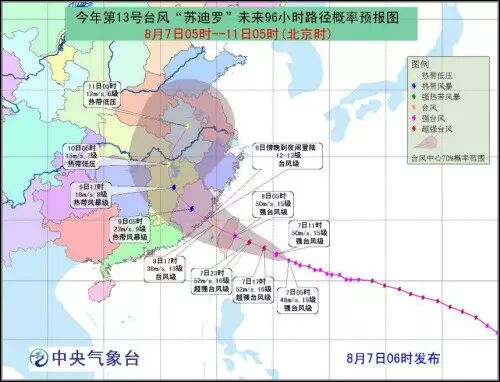 中央气象台同时发布大风和降雨预报,7日8时至8日8时,东海东南部海域、钓鱼岛附近海域、台湾海峡、巴士海峡、台湾以东洋面以及台湾沿海、福建沿海、浙江中南部沿海将有7-9级大风,阵风可达10-11级,其中台湾海峡及台湾以东洋面的部分海域、台湾东部和北部沿海、福建中北部沿海将有10-12级大风,阵风可达13-14级,“苏迪罗”中心经过的附近海域的风力有13-16级,阵风可达17级以上。