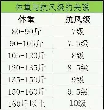 下图是体重与抗风级的关系表,请对号入座,量重出行...