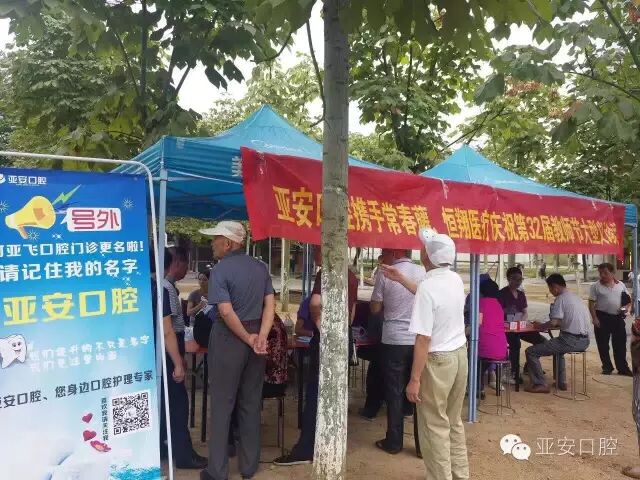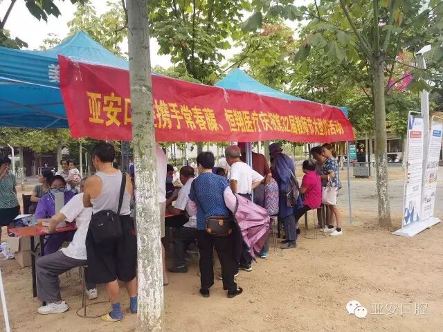 9月10日活动现场医生张医生、李医生、程医生,护士张鹤、朱璐璐、黄幸子。市府广场文庙前,旅游人群也纷纷走过来体验免费口腔检查。 现场教会大家如何正确刷牙及如何正确使用牙线,希望大家都有一口健康美观的牙齿。 美丽生活,从“齿”开始~亚安口腔,您身边的口腔护理专家 类似这样的公益活动我们以后会多多举办,希望大家积极参加! 敬请关注我们的公众号!! 一店:桐城市盛唐南路168号 (格林豪泰隔壁) 热线电话:0556—6168168