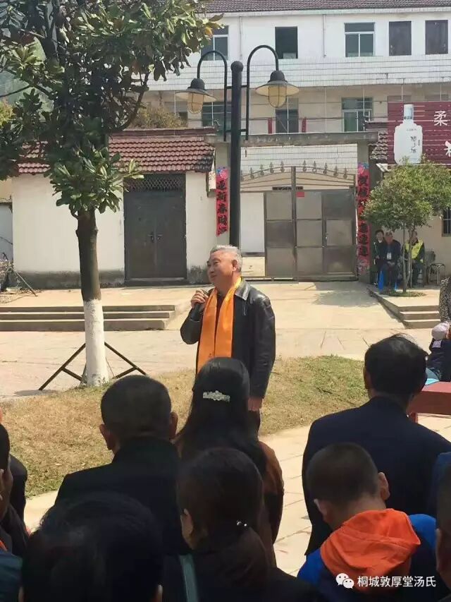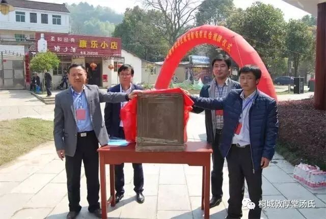2017年4月2日,在这个春暖花开、风和日丽、万物复苏、充满生机与希望的美好日子里,来自枞阳、庐江、无为、桐城、舒城、池州、繁昌、宣城、望江、宿松、合肥市区、安庆市区、铜陵市区、九江等各地的210位宗亲欢聚在一世祖发源地浮山,隆重举行皖桐寿坟汤氏续谱筹备委员会揭牌仪式。活动现场气氛热烈,亲情洋溢。 活动由枞阳县政协委员、枞阳网站长(总编)、皖桐寿坟汤氏续谱筹备委员会揭牌仪式会务组组长汤文主持。 活动第一项:举行了完整版七修谱内容捐赠仪式,由七修谱持有人——枞阳会宫汤中久宗亲向与会宗亲展示了完整版七修家谱,并捐赠了完整版七修谱内容捐赠。 活动第二项:会议主持人汤文向与会宗亲宣读了《皖桐寿坟汤氏续谱筹备委员会》章程与组织架构及成员推举名单,推举汤涌、汤传信、汤伯生、汤小波、汤晓克、汤绳武出任顾问职务;推举汤中应出任会长职务;推举汤华泉、汤爱民、汤传盛、汤卫东出任副会长职务;推举汤文出任秘书长职务;推举汤运福、汤中将、汤学珍、汤章胜、汤传飞、汤旭光、汤运秋、汤中勋、汤传勤、汤忠久、汤来军、汤平福、汤国祥出任委员职务。